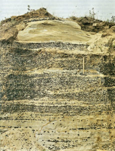 The end of the Cretaceous period saw the extinction of the dinosaurs and the gradual disappearance of the Chalk Sea as sea level fell throughout the world. The next chapter in our story involved further inundations in later geological periods which deposited a great thickness of other rocks over the whole area. Much of Essex is therefore built on these younger rocks but the Chalk is, of course, still present beneath the surface, in some cases as deep as 200 metres below ground level. In many cases the younger rocks consist of pebbles, sand or gravel, the remains of countless billions of flint nodules that have been removed from the chalk and ground down by erosion.